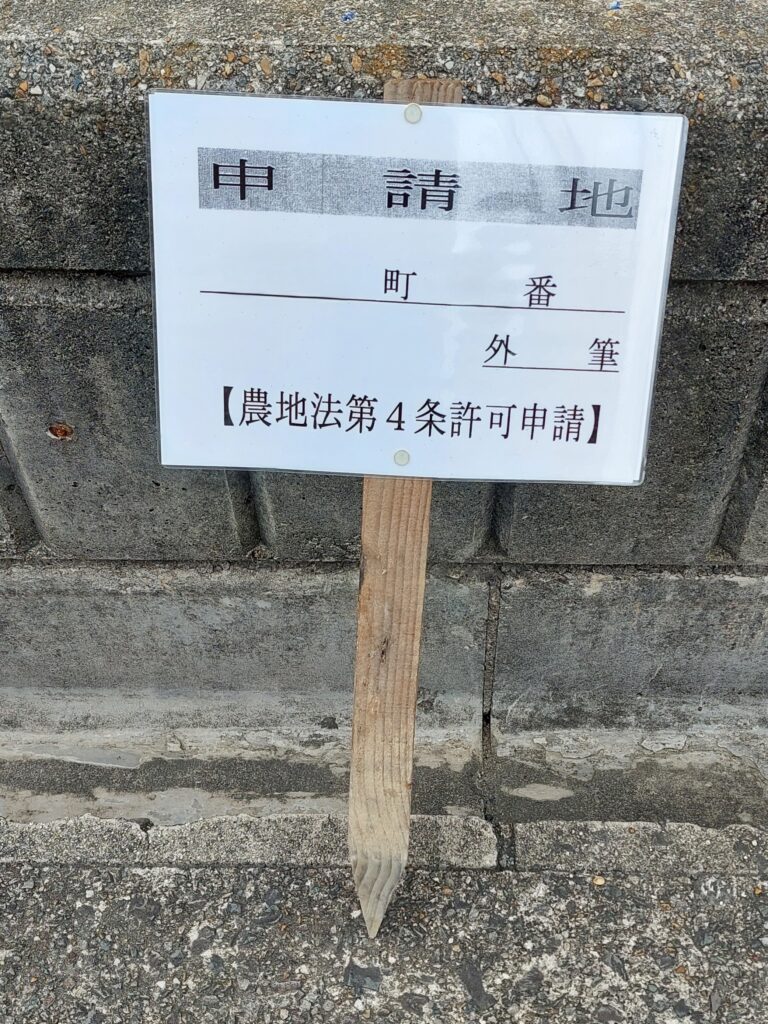 今回は、農地を宅地や駐車場に変えたい場合に必要となる「農地法第4条の許可申請(いわゆる4条申請)」について、基本的なポイントと先日の立て看板設置についてお話いたします。